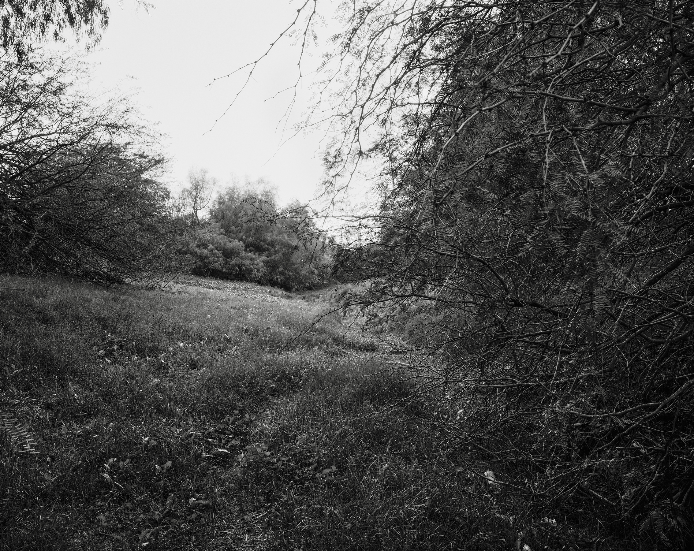 Since the early 2000s Ickowicz has been photographing the Israeli space in all its everyday complexity. Yet rather than documenting the destructive nature of the local political struggle, his work addresses the repercussions of the conflict on the landscape. He practices “landscape photography,” a seemingly objective form of expression that gains political meaning precisely from what is absent from it. It is this artistic strategy that Ickowicz applied to the wounded space left by the events of October 7. Unlike the brutal and psychologically overwhelming sequence of images etched in Israeli consciousness through news channels and social media, Ickowicz’s gaze is slow, measured, almost tranquil. The exhibition presents a “field” that is not only a physical space but also the site of a painful truth retained in the landscape, affording a different viewpoint on internal and external reality.